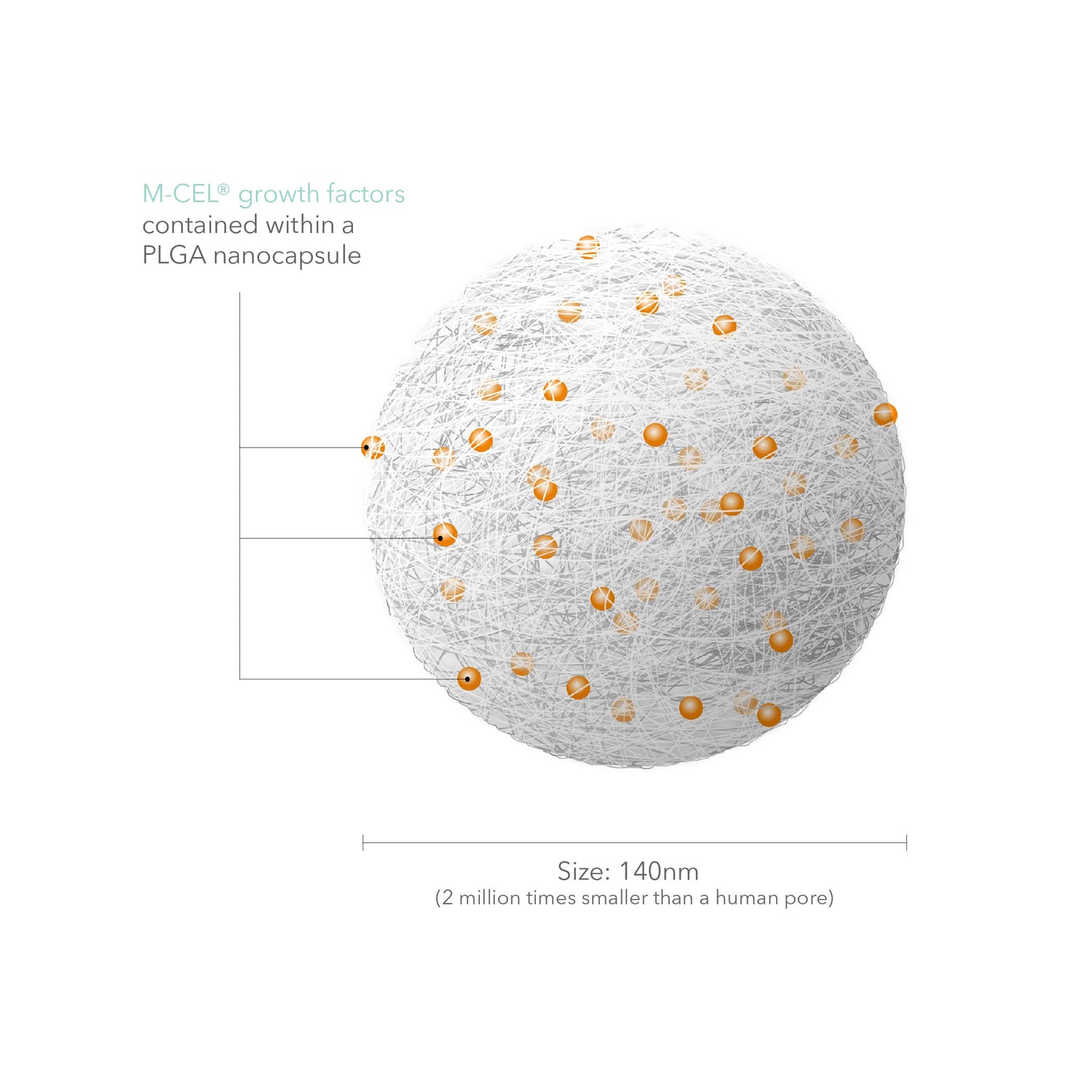 通过使用PLGA*2纳米胶囊,这些胶囊的大小约为人体毛孔大小的1/2,000,000,我们可以增强M-CEL®中有益成分的传递。